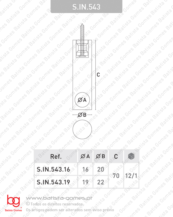 Batista Gomes, Lda.  S.IN.543 - Suporte central para varão - INOX 304