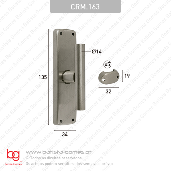 CRM.163CREMONE SOBREPÔRDim: 135x34mmInclui 5 guiasMecanismo com molaAcabamentos abaixo indicadosPara mais informação consultar desenho técnico