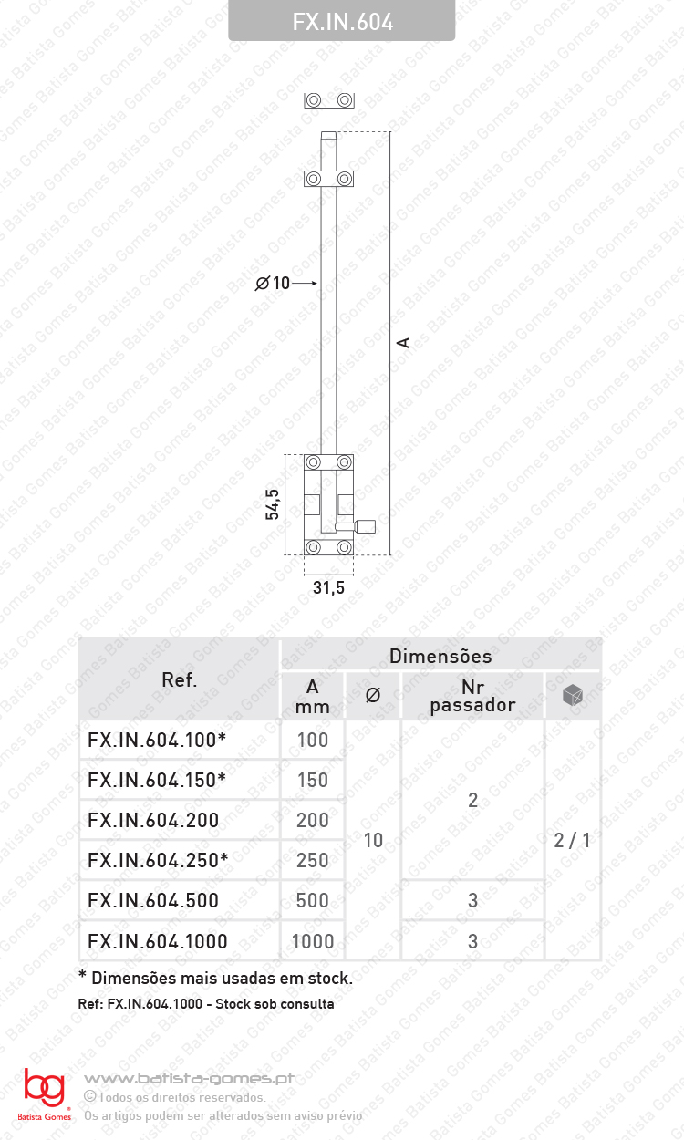 Batista Gomes, Lda.  FX.IN.604 - Fecho culatra - INOX 304