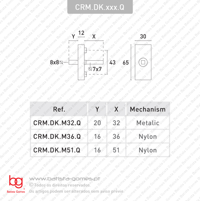 Batista Gomes, Lda.  CRM.DK.xxx.Q - Mecanismo de janela DK de 4 posições