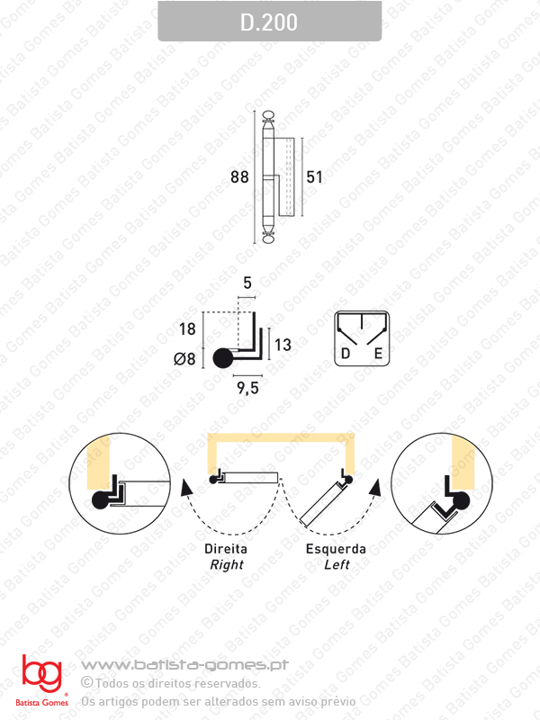 Batista Gomes, Lda.  D.200 - Dobradiça para mobiliário - FERRO / LATÃO