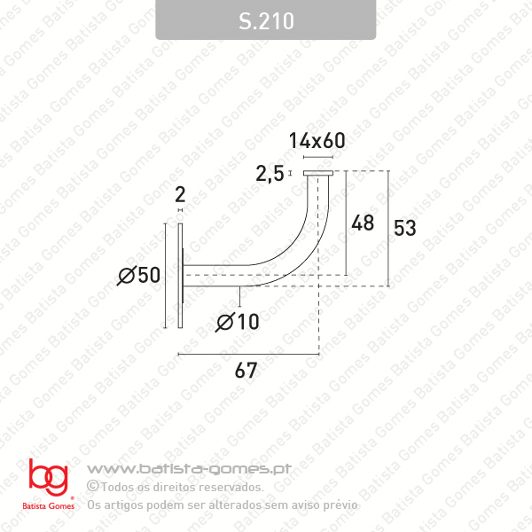 S.210 SUPORTE PARA CORRIMÃO• Varão redondo Ø10 Para mais informações consultar desenho técnico